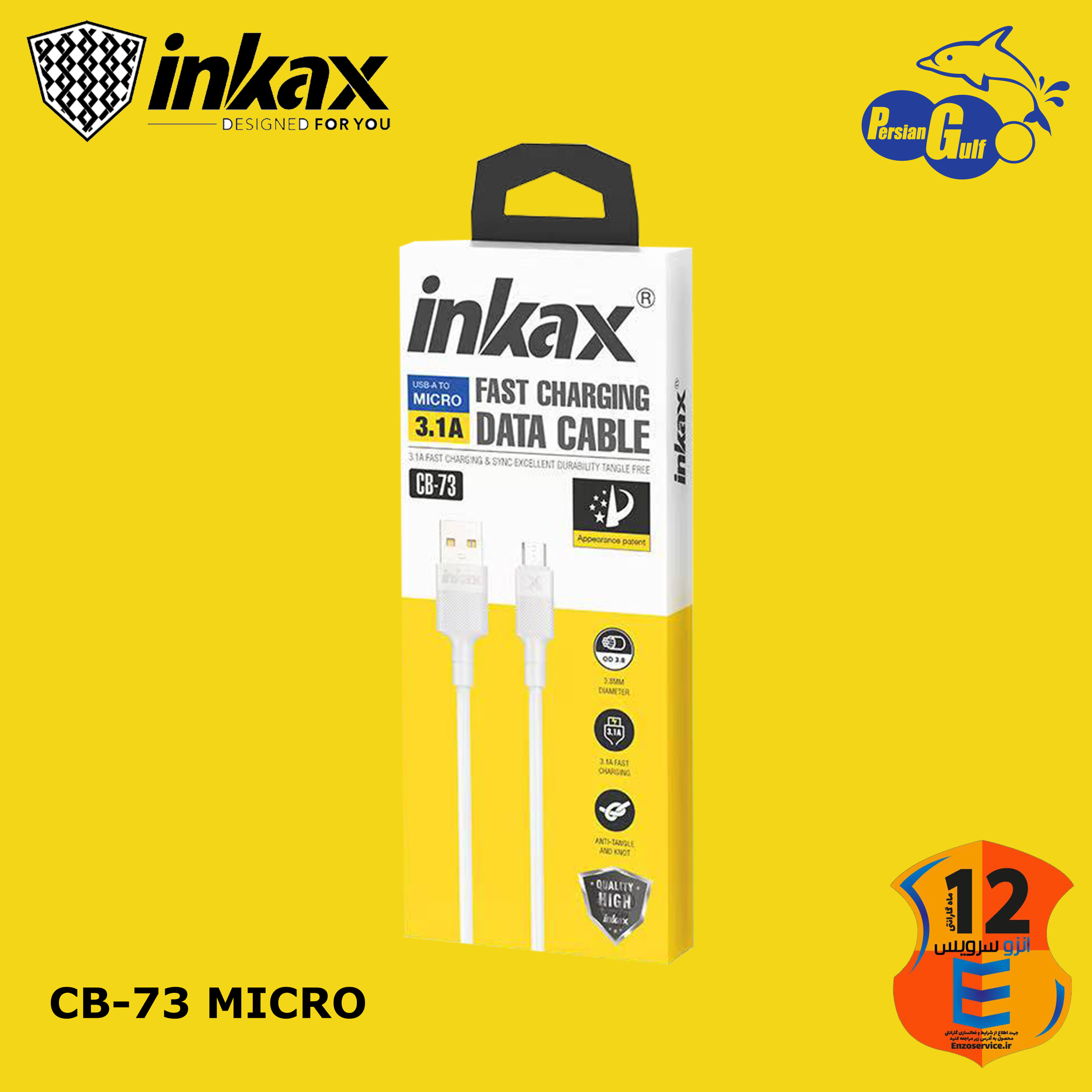 کابل شارژ MICRO برند Inkax مدل CB-73 رنگ سفید