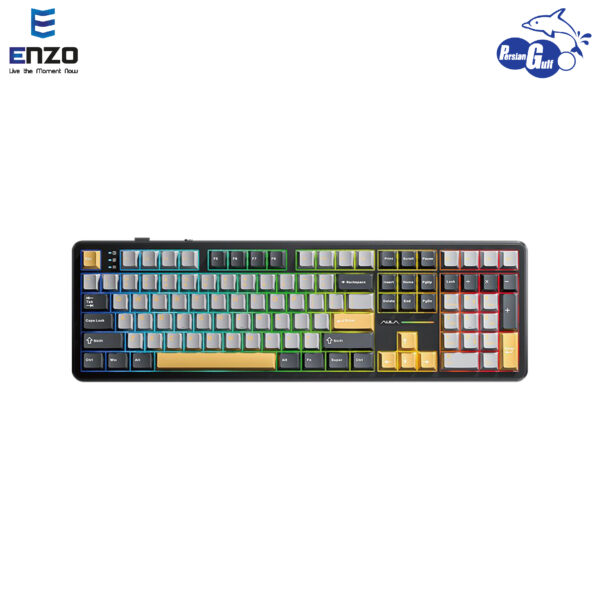 کیبورد مکانیکال برند AULA مدل F108 dark grey light grey yellow Volcanic switch